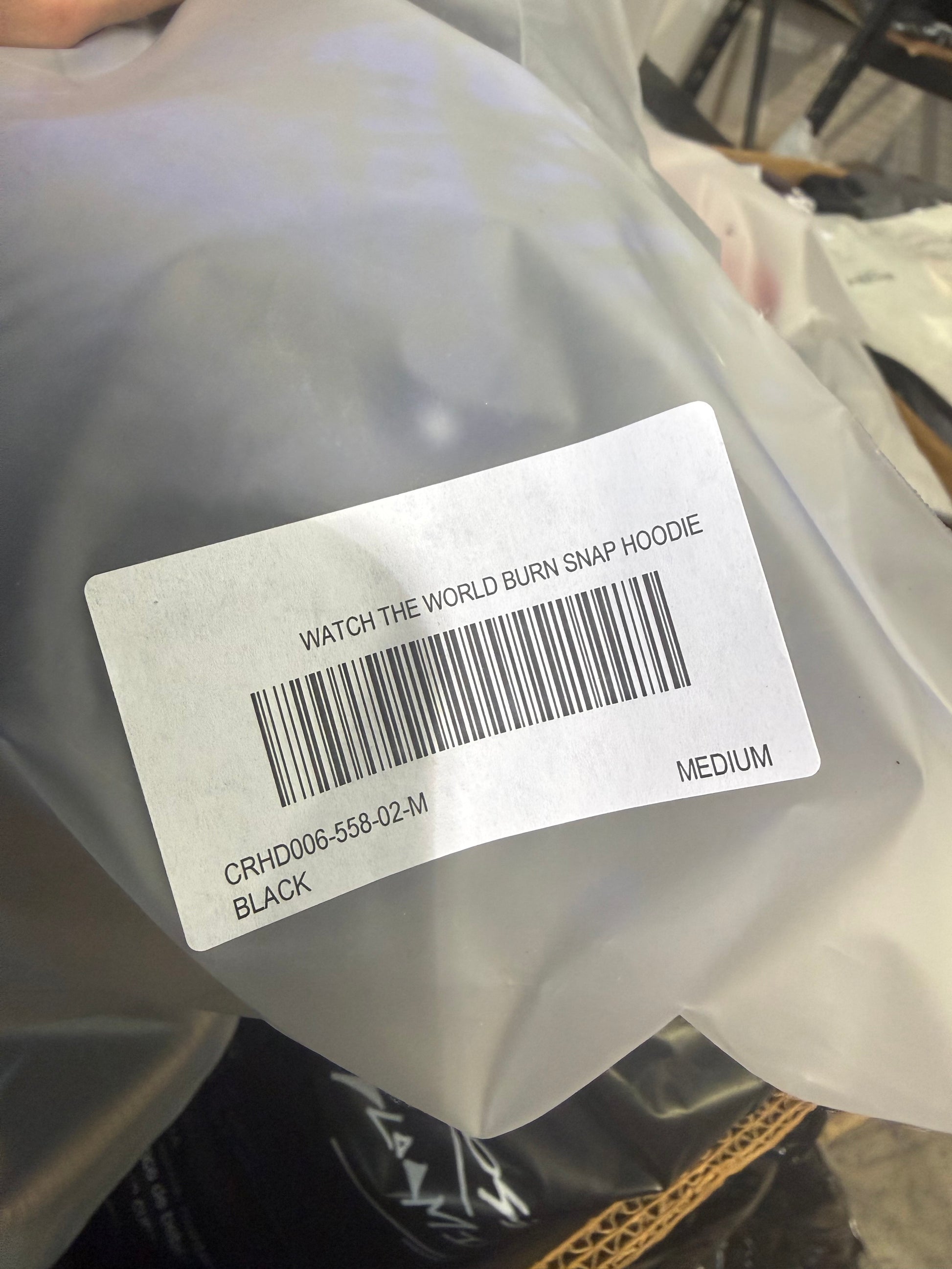 Snap-button hoodie with bold "Watch the World Burn" graphic.