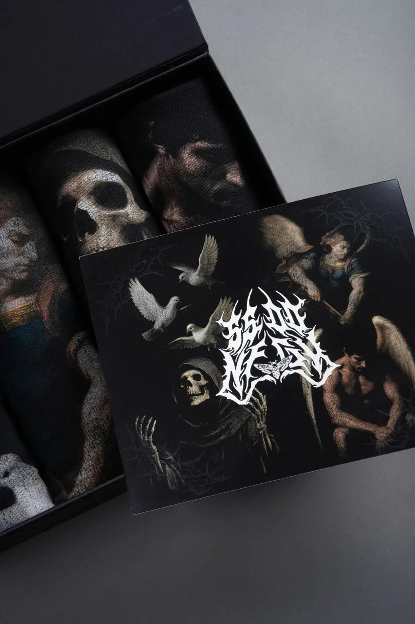 Darc Sport Fear Thou Not “Side-By-Side” Tee Box Set in Black — an ultra-limited 1-of-500 Side By Side release featuring multiple oversized black tees themed around the Fear Thou Not / Never F*ckin Give Up collection, packaged in custom SBS box art.